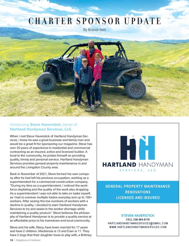 Founded by Steve Haverstick, Hartland Handyman Services, LLC provides general property maintenance services in the Livingston County, MI area. Steve prides himself on providing quality, timely service.